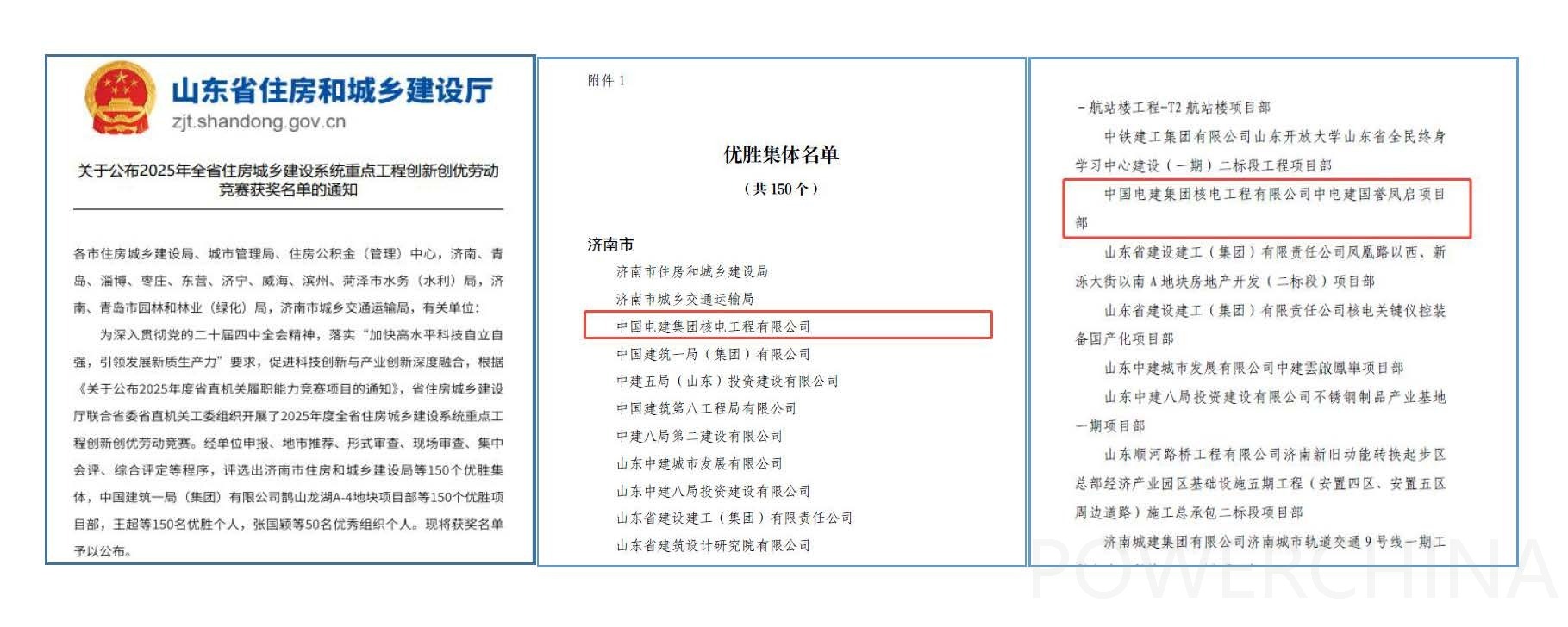 近日,山东省住房和城乡建设厅公布了2025年省住房城乡建设系统重点工程创新创优劳动竞赛获奖名单,经严格评审,公司凭借卓越表现荣获"优胜集体"称号,中电建国誉凤启项目获评“优胜项目部”。申报过程中,公司质量控制部联合多个职能部门与核电地产公司精心准备材料,围绕质量品质、安全生产、技术创新、党建引领、科学管理等核心指标,系统梳理项目施工中的重难点问题,并精心编制申报材料。最终通过地市推荐、形式审查、现场审查、集中会评、综合评定等程序,成功获评该项殊荣。