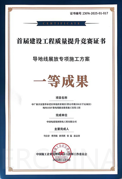 日前,中国施工企业管理协会公布了首届建设工程质量提升竞赛活动获奖结果,公司获奖总数位居行业前列,并应邀在大会作专题报告,充分展现了公司在质量管理方面的创新能力和专业优势。 全国首届建设工程质量提升竞赛吸引了全国范围内众多优秀企业踊跃参与,赛事等级高、评审流程严。经过多轮激烈角逐,公司申报的《导地线展放专项施工方案》荣获一等奖,并被授予“最佳发布”称号;《新建潍坊至烟台铁路综合开发配套柘埠49.8MW风力发电工程EPC总承包项目质量创优策划》《高边坡专项施工方案》《1号机组锅炉板梁吊装专项方案》获得二等奖;《1号汽轮发电机汽动给水泵上部结构高支模专项施工方案》《国能哈尔滨热电2×660MW热电联产扩建项目A标段质量策划》获得三等奖。 |