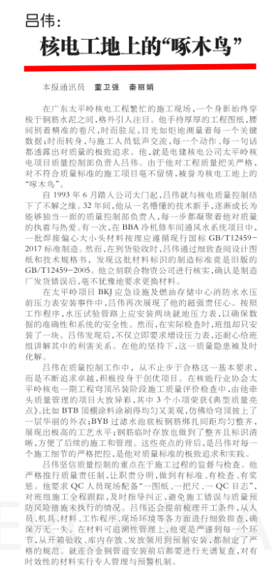 山东工人报:核电工地上的“啄木鸟”