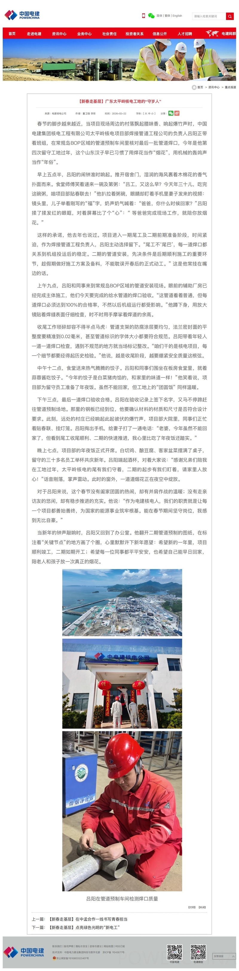 集团网站:【新春走基层】广东太平岭核电工地的“守岁人”